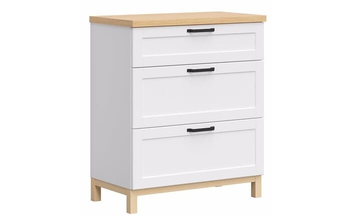 Используемый материал: корпус ЛДСП 16 мм., крышка ЛДСП 32 мм., ламинированное ДВП, фасады МДФ, шариковые направляющие 100% выдвижения, ручка мебельная скоба черный матовый. Цвет опоры по фото