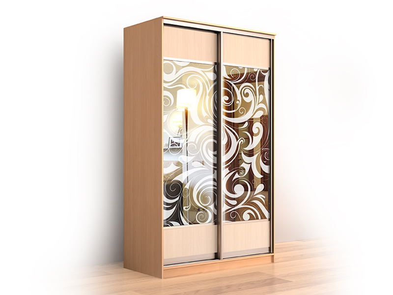 Используемый материал: корпус - ламинированное ДСП 16 мм, ламинированное ДВП; фасады - полностью алюминиевая конструкция люкс - Версаль (периметр каждого фасада в алюминиевом профиле - ручке), вставка ЛДСП, зеркало с пескоструйным рисунком.
