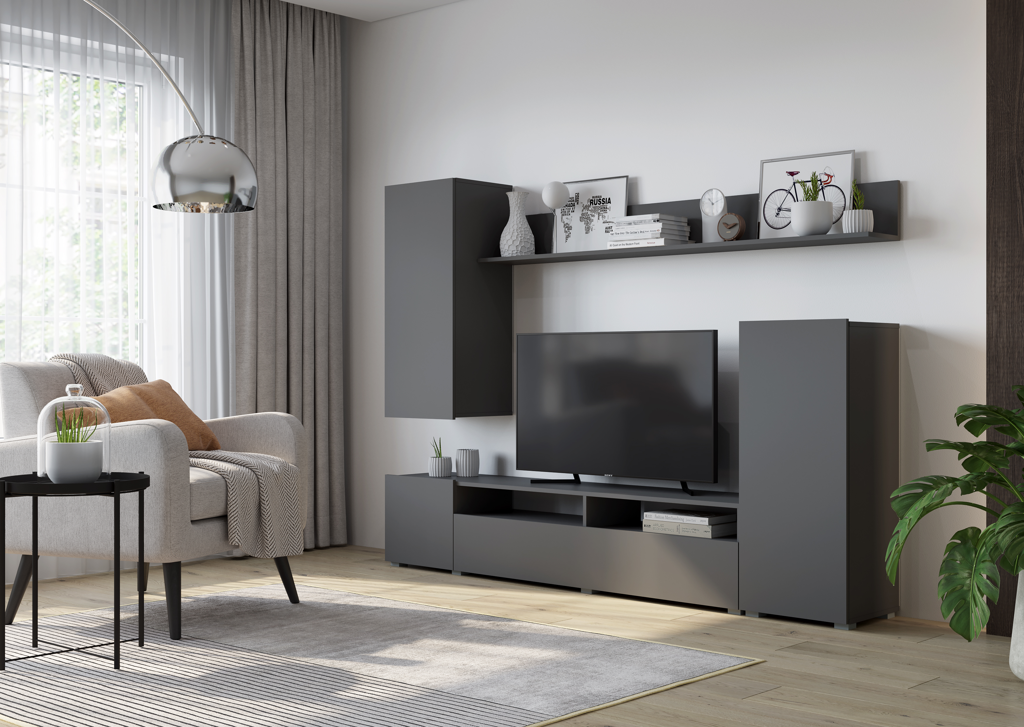 Стенка для гостиной "Лира ЛДСП серый графит"