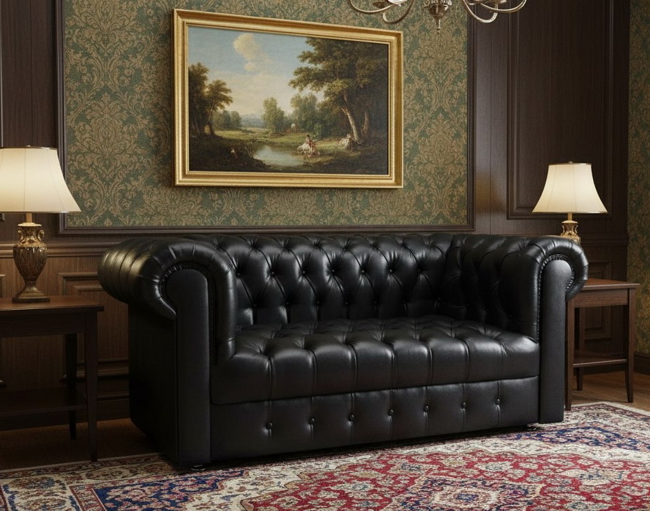 Диван "Честер каретная стяжка черный 2-х местный" купить недорого в КовровеСтоимость категорий ткани: