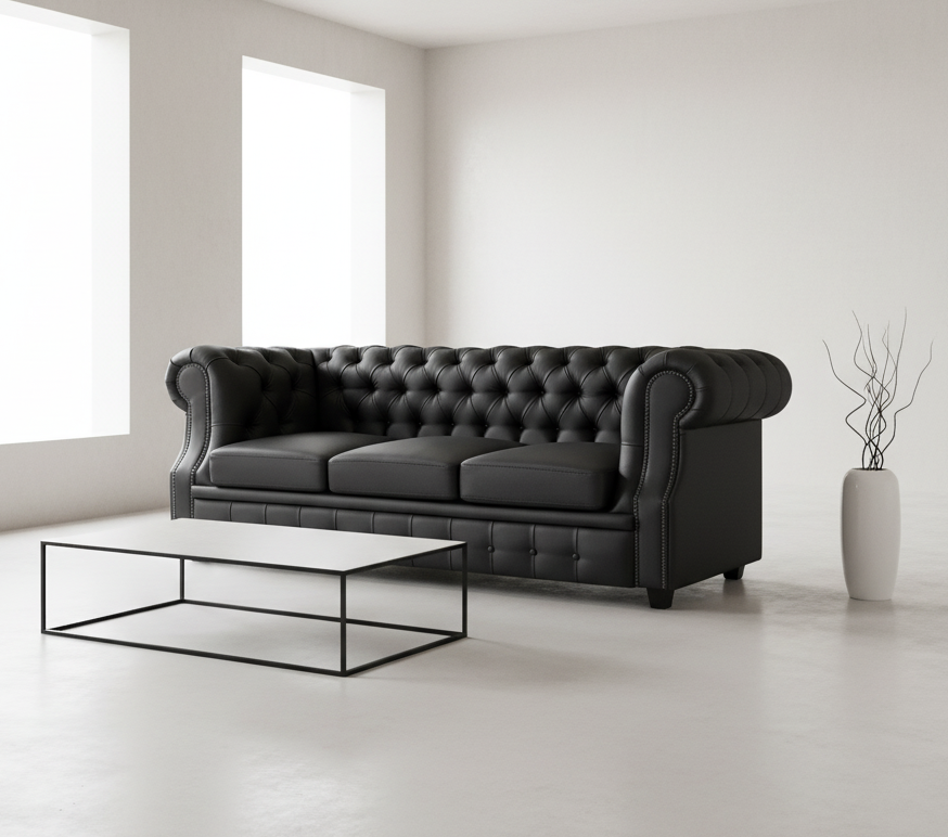 Диван "Честер Лофт" черный 3-х местный