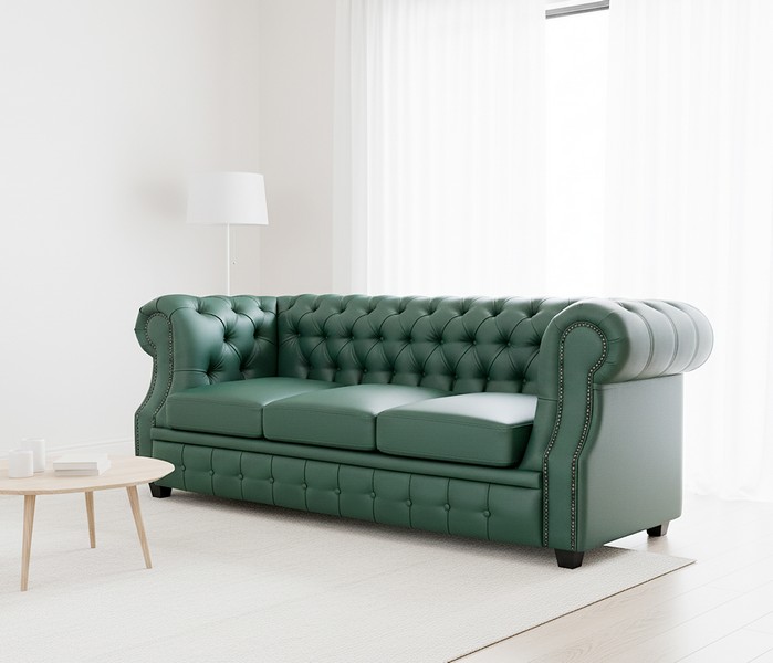 Диван "Честер Лофт" зеленый 3-х местный