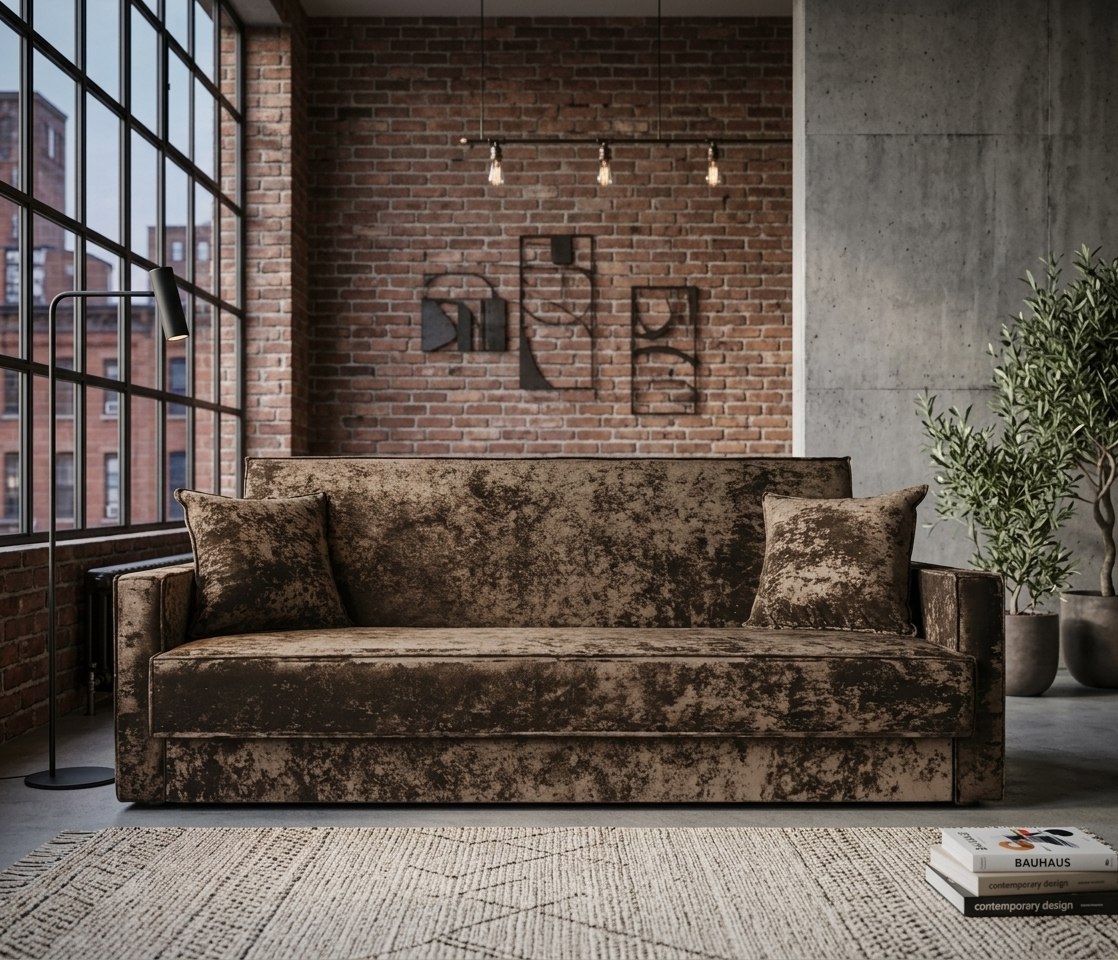 Диван книжка "Лофт с узкими подлокотниками" плюш коричневый купить недорого в КовровеСтоимость категорий ткани: