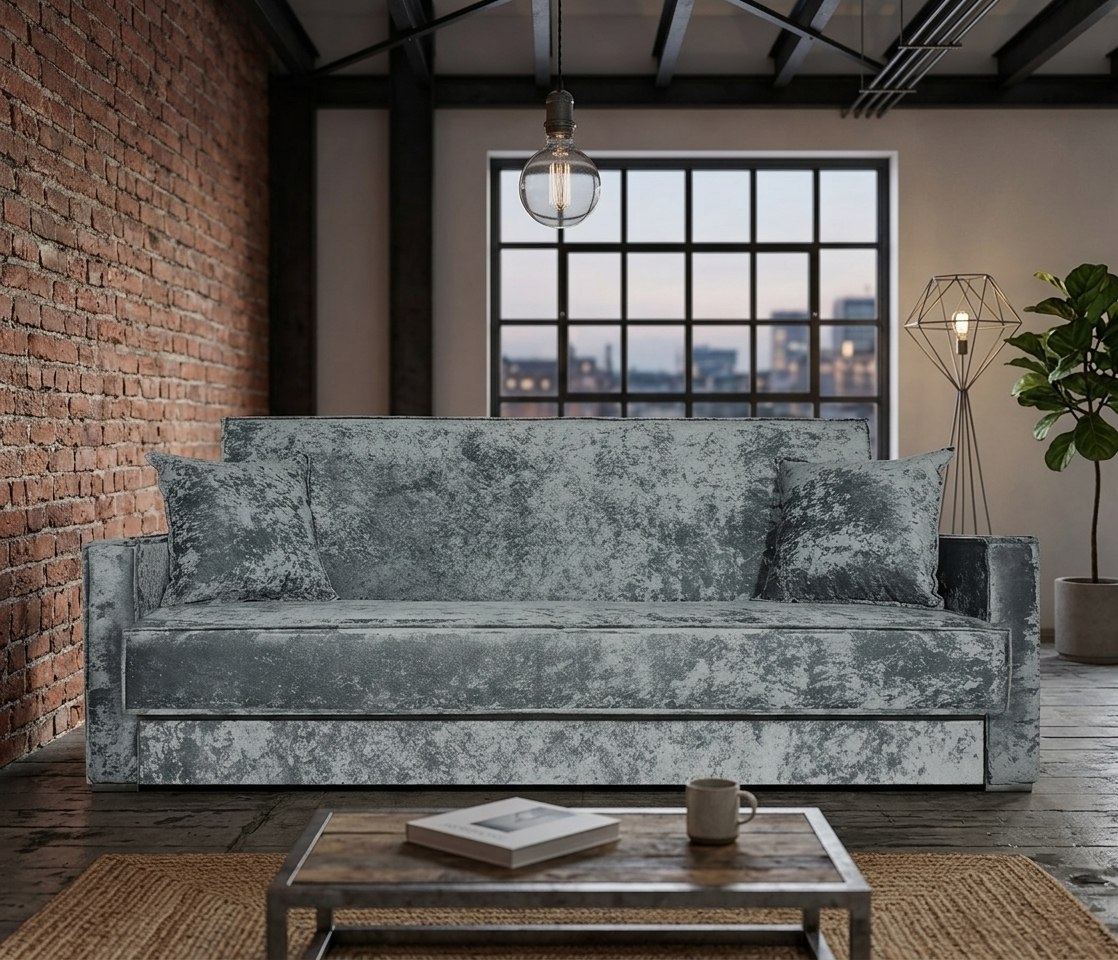 Диван книжка "Лофт с узкими подлокотниками" плюш серый купить недорого в КовровеСтоимость категорий ткани: