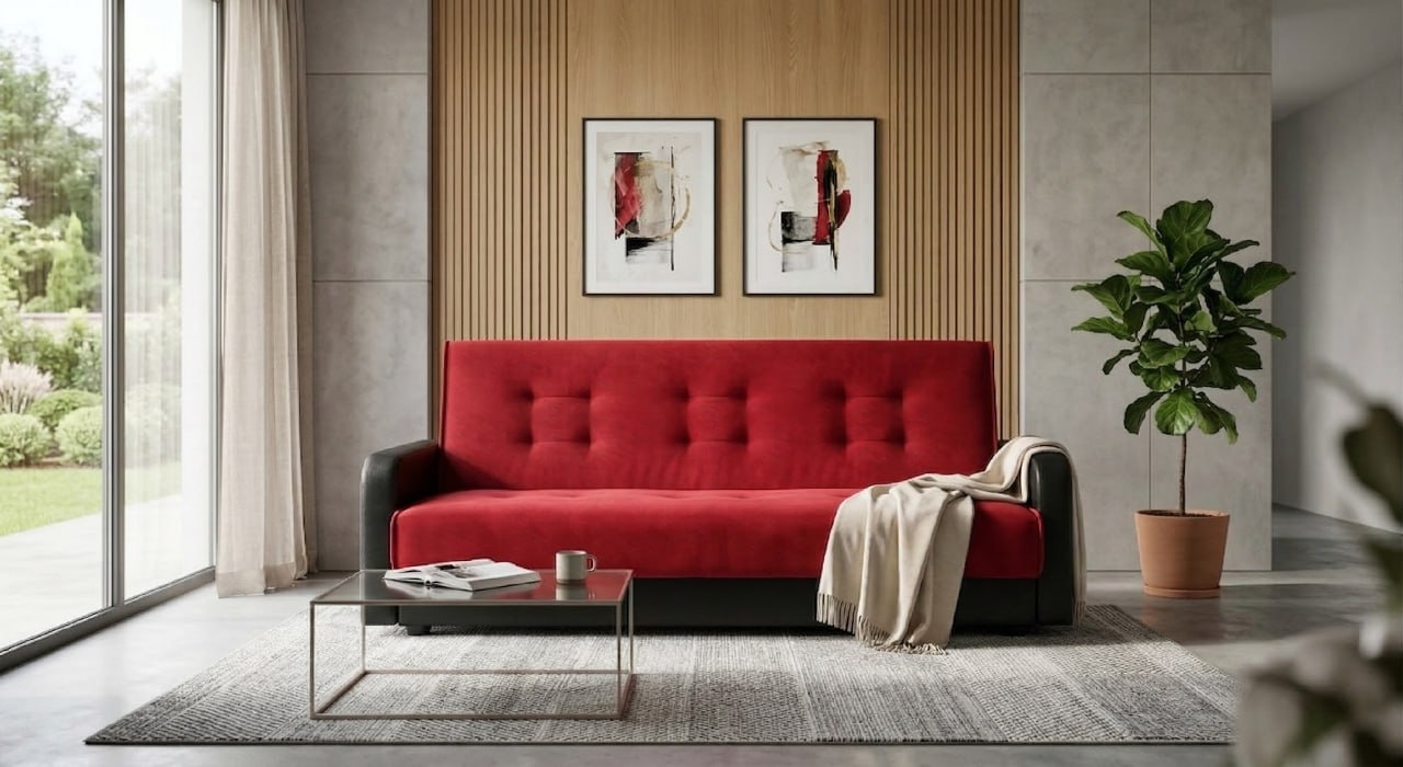 Диван книжка "Лондон" рогожка красная купить недорого в КовровеСтоимость категорий ткани: